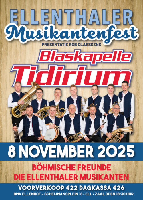 6e Ellenthaler MusikantenFest Dé perfecte mix tussen het beste uit de regio en internationale blaasmuziektoppers!! Die Ellenthaler Musikanten – Ell (NL) Wij Ellenthaler Musikanten hebben een gedreven voorliefde voor moderne, doch traditionele blaasmuziek. Dit vertaalt zich in een repertoire met nieuwe uitdagende composities uit o.a. Oostenrijk en het zuiden van Duitsland aangevuld met traditionele blaasmuziek […]